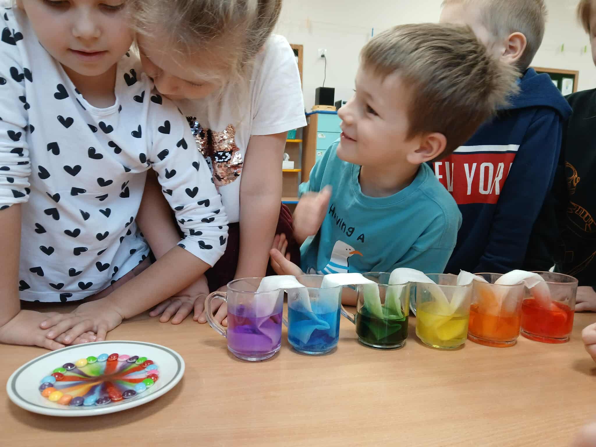 10.10.2025 R. DOŚWIADCZENIA GRUPA „ŻABKI”- TĘCZA NA TALERZU I W SZKLANKACH